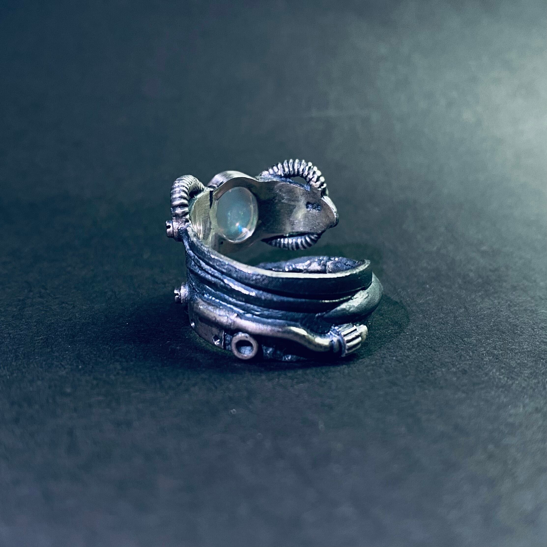 トンボの「翅」と「おしり」をモチーフにしたスチームパンクのシルバーリングです。
